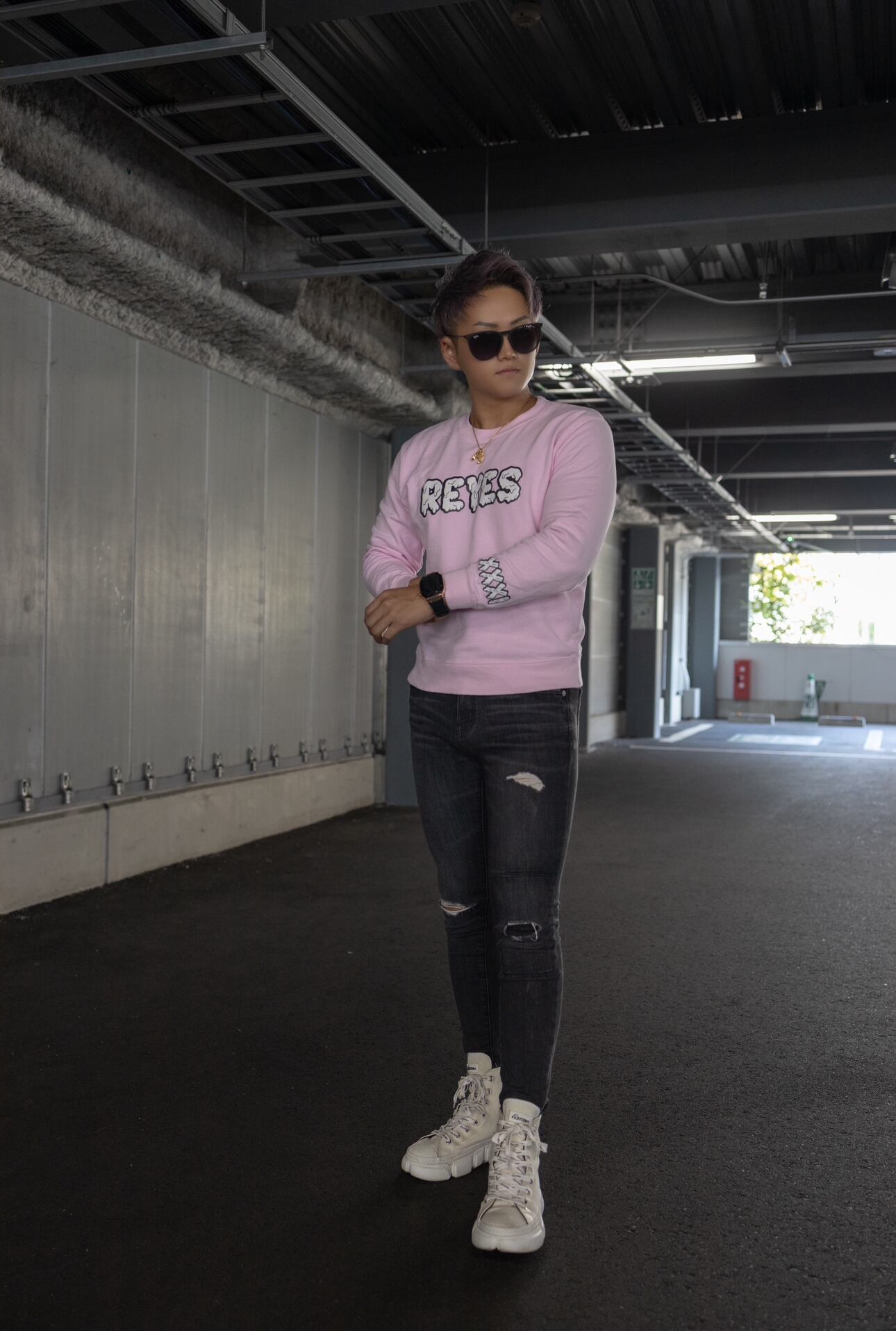 シンプルなのに存在感のある胸元のデザインに加え、REYESではお馴染みのデザインXXXIのロゴを手首部分に採用。